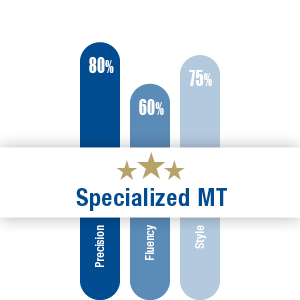 如果您拥有大量历史译文数据,且对某一特定文本类型或专业领域有较高翻译需求,则建议采用专业化 MT。对于高度限定的文本类型与专业领域,其使用同样具有优势。